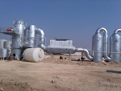 廢液和壓縮空氣經(jīng)管路控制系統(tǒng)進(jìn)入霧化系統(tǒng),廢液霧化后噴入燃燒室,并依次通過(guò)迷宮除塵室和二次燃燒室,廢液中的有機(jī)物被焚燒,水分被蒸發(fā)。焚燒產(chǎn)生的高溫?zé)煔膺M(jìn)入空氣換熱器,然后依次通過(guò)兩級(jí)急冷、吸附塔,煙氣中的微小粉塵及有害物質(zhì)(SO2、HCl等)被捕集吸收,經(jīng)處理后的干凈氣體由引風(fēng)機(jī)引入煙囪,排入大氣。